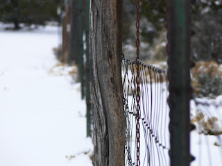 Unfortunately, I don't have any photos of the dinner, but here's a picture of some wild horses that the Rez was full of, and another one of our morning walk on a wintery day to the office, to say prayers with the rest of the staff. Both pics are taken by Phil.